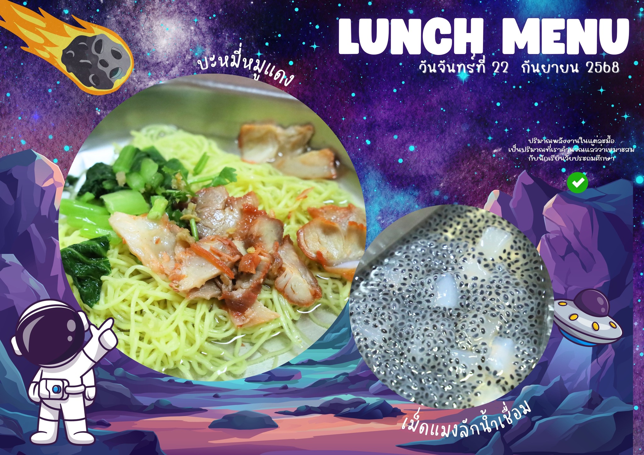เมนูอาหารกลางวัน วันที่ 22 กันยายน 2568