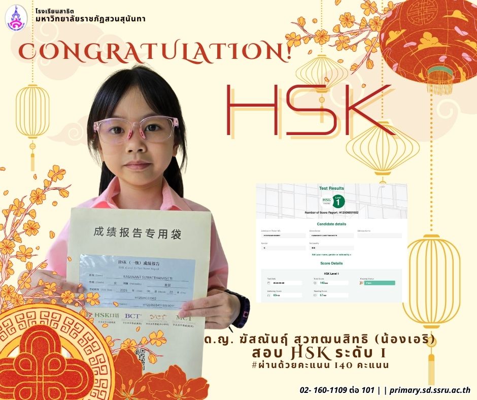 ขอแสดงความยินดีกับเด็กนักเรียนที่ลงสมัครสอบ HSK วันเสาร์ที่ 19 กรกฎาคม 2568 ขณะนี้ผลสอบได้ออกมาทางเวปไซต์จากปักกิ่งเป็นที่เรียบร้อย จาก   www.chinesetest.cn