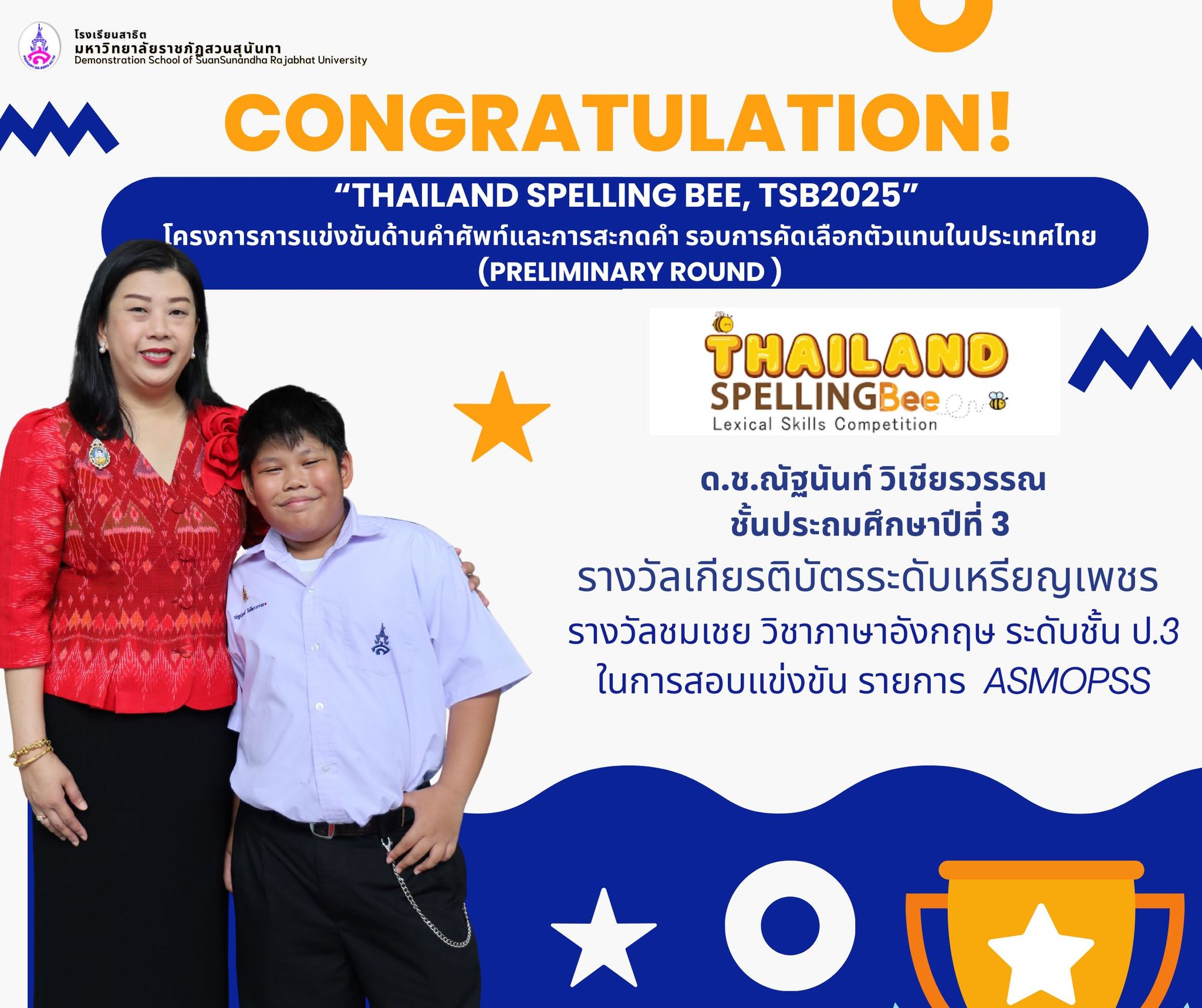 Received a Diamond Medal Certificate from the "Thailand Spelling Bee, TSB2025" project.