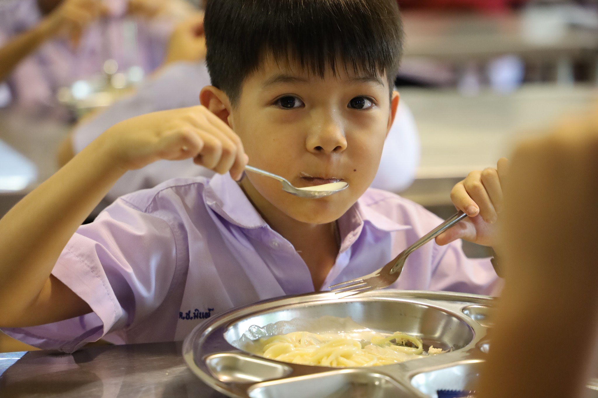The Suan Sunandha Rajabhat University Demonstration School Lunch Program has prepared a favorite lunch for all students. The children's favorite dish, "Spaghetti Carbonara," is sure to fill them with smiles and encouragement. The soft noodles and the rich flavors of cream and milk create happy memories and warm memories of school time together. Before the students enter their break for the semester, we wish all students happiness, joy, and a bright future, ready to return to the new semester with full energy.