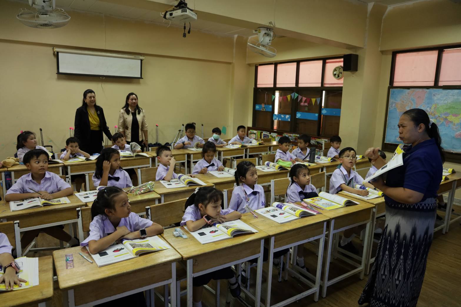 ตรวจเยี่ยมและทักทายนักเรียนในห้องเรียน