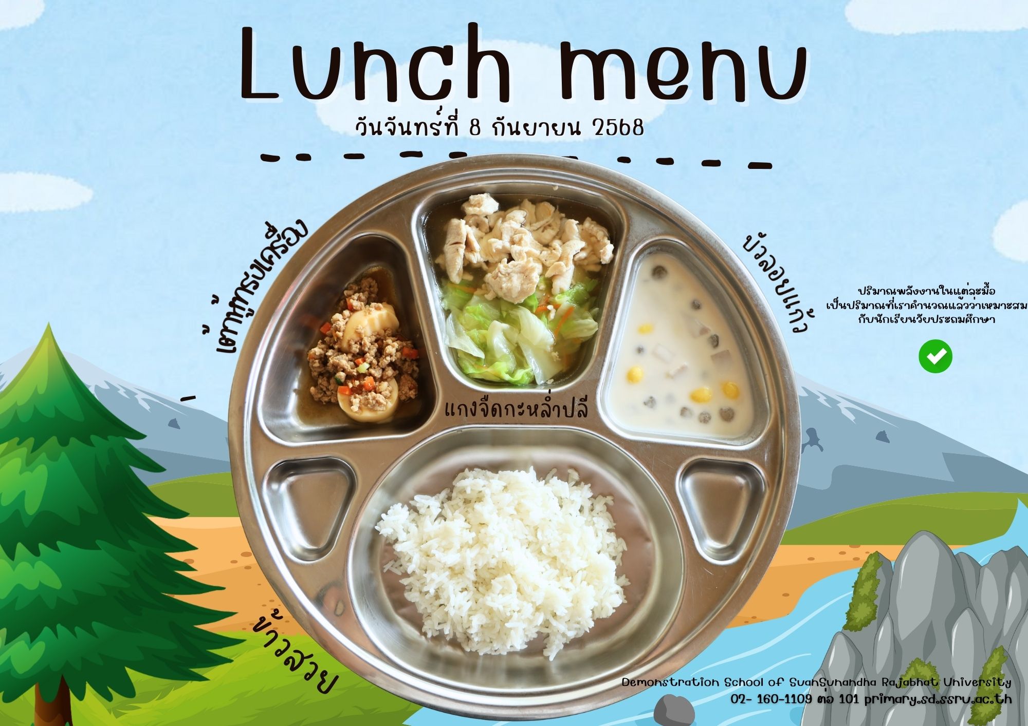 หน้าหลัก > ข่าว > ข่าวประชาสัมพันธ์ > เมนูอาหารกลางวัน วันที่ 8 กันยายน 2568