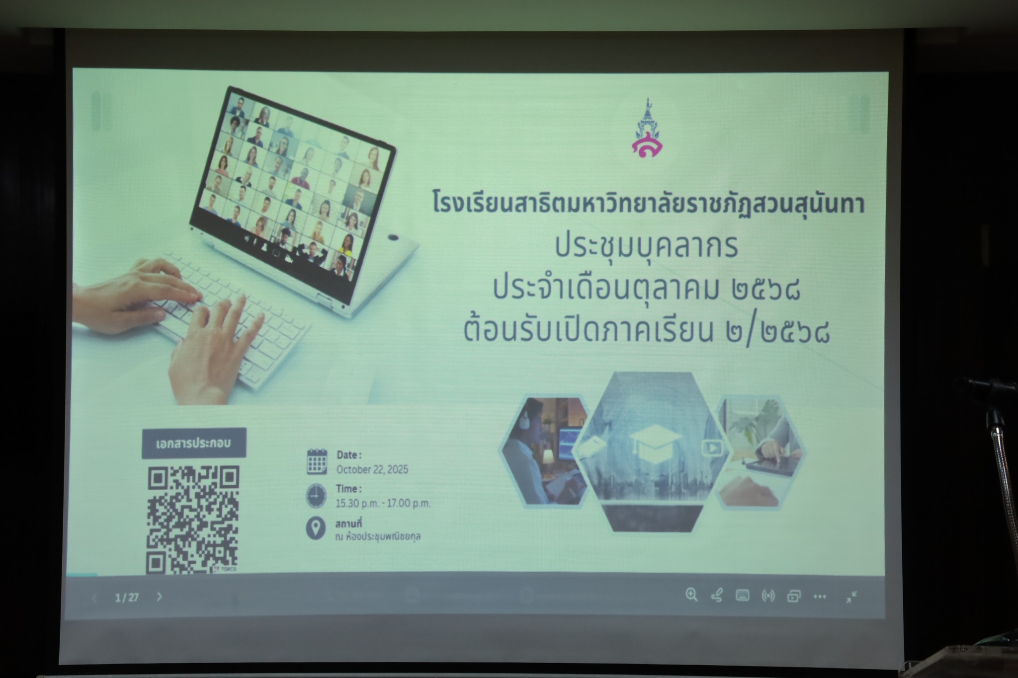 การประชุมบุคลากรโรงเรียนสาธิตมหาวิทยาลัยราชภัฏสวนสุนันทาประจำเดือนตุลาคม