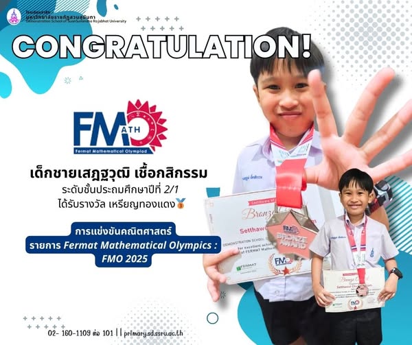 โรงเรียนสาธิตมหาวิทยาลัยราชภัฏสวนสุนันทาขอแสดงความยินดีกับคนเก่งสาธิต