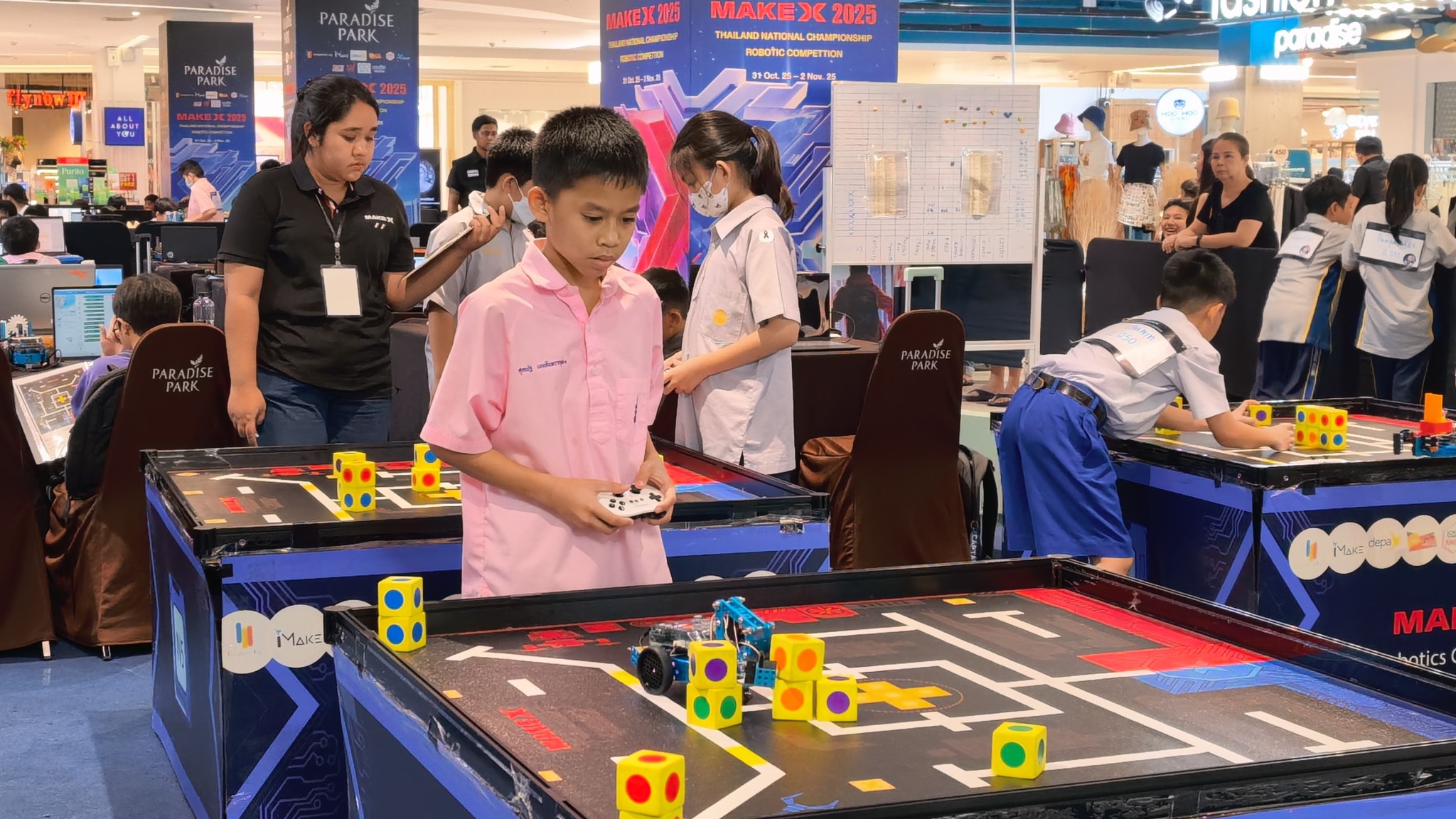 การแข่งขันหุ่นยนต์ 2025 MakeX Thailand Robotics Competitions รอบชิงแชมป์ ประเทศไทย สนามรุ่น MakeX Starter 1 ทีม 2 คน และสนามรุ่น MakeX Inspire Logistics 3 ทีม ในการทำภารกิจหลายการคิดเชิงในวันที่ 31 ตุลาคม - 2 พฤศิกายน 2568 พาราไดร์พาร์ค ศรีนครินทร์ ดังนี้